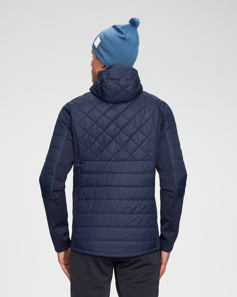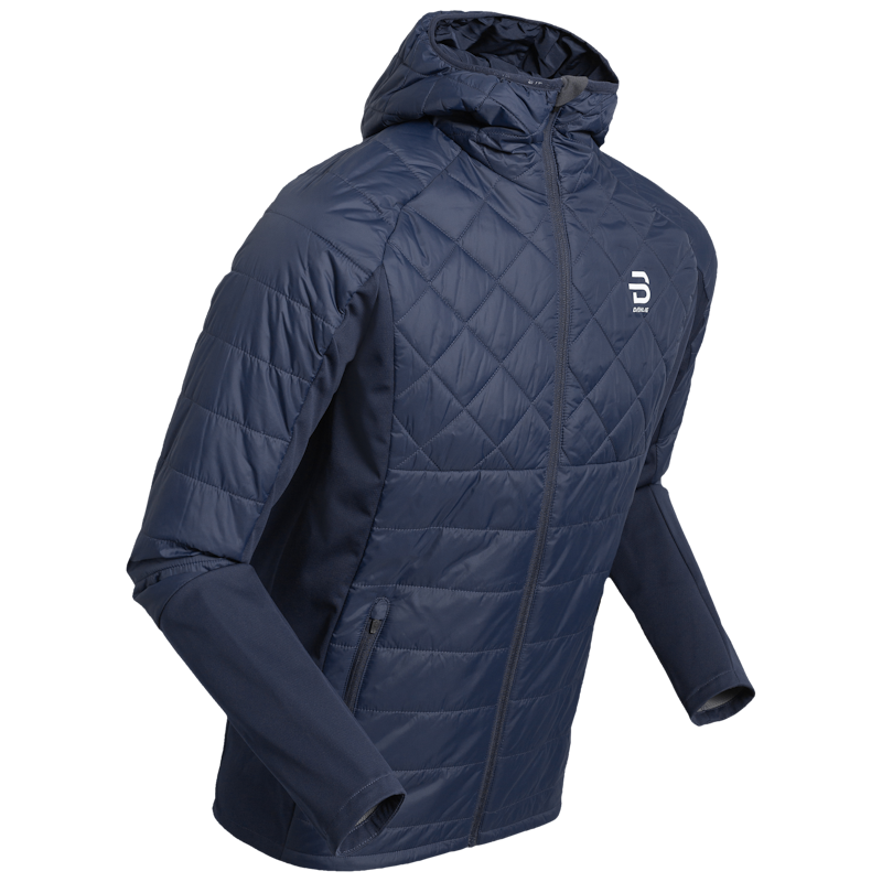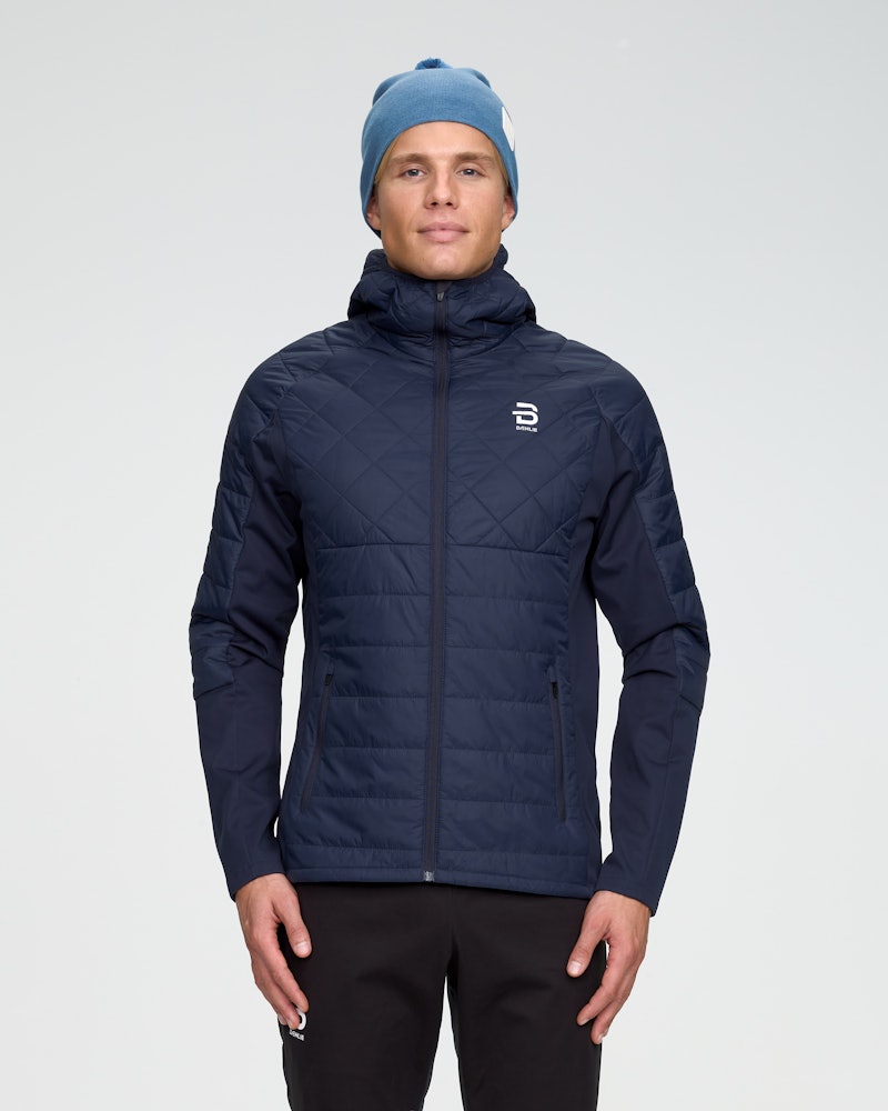 Jacket Graphlite is a lightweight outdoor jacket with a hood, perfect before and after exercise or as a leisure jacket. The Bionic Finish Eco® technology used on the fabric's surface ensures that light rain and sleet bounce off. This is a quilted jacket that provides good insulation, feels full, and stays lump-free after washing. A high collar and shaped hood provide extra warmth and comfort. The front zipper zips right up with chin protection from the fleece. The elastic 3-layer soft shell panels in the side and under the arms provide good mobility and ventilation. Two zippered hand pockets.