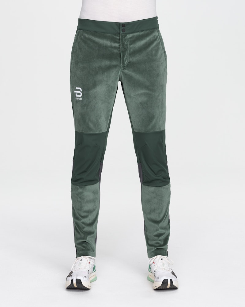Our statement pants in modern design perfect for low intensity cross-country skiing. Inspired by the the ribbed pattern of a freshly packed skate ski trail, we have for the first time introduced corduroy in our collection. This durable fabric provides protection from the cold, as the dense weave blocks the wind, which in combination with the brushed backside yields added warmth throughout your session. Featuring a lightweight 3- layer softshell material at the back, these pants are laminated with a TPU membrane, ensuring that light rain and sleet run off, providing you water-repellent and wind-resistant pants, giving you added protection during your skiing activities. Strategically placed elastic panels and articulated knees ensure optimal movability and ventilation, keeping you comfortable during your activities. Other features include YKK® zippers, leg zippers, a fly front zipper with button closure, two zippered pockets and embroidered logo. The perfect cross-country skiing pants when you want both function and fashion. Water column: 10.000 WP, Breathability: 10.000 MVP