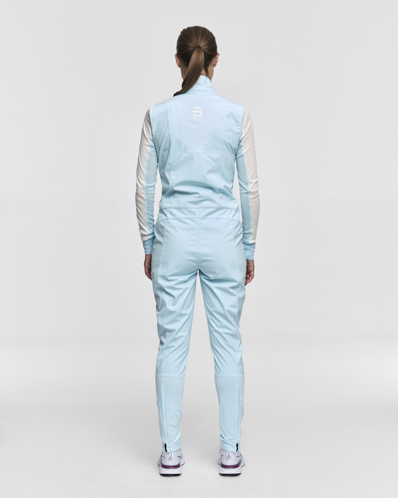 "This cross-country dress is a perfect statement piece for the ski track, designed for the environmentally and fashion-conscious skier for activity in cold environments. We strive to create products in a way that can reduce our environmental footprint, and Suit Aware is our latest advance on the journey towards becoming sustainable. Suit Aware consists of recycled 3-layer softshell laminated with a PU membrane, and elastic fabric strategically placed on the back to ensure optimal mobility and ventilation. The PU diaphragm is designed to keep moisture, while transporting moisture out of the inside, so the garment both dries quickly and breathes well through the workout. Designed with padding on the most exposed areas of the chest and thighs, so you stay warm on even the coldest days. The padding is located to avoid the body's hottest zone, to reduce excess moisture, so you can feel comfortable throughout the workout. This fashionable ski dress's second attributes include chin protection, recycled zippers, and zipper on the legs for optimal fit. Isolated with Thermore® Ecodown, which consists solely of recycled fibers from PET bottles, provides this pants for heat with improved shelf life throughout the life of the garment, while at the same time constituting a lower environmental impact. Designed as part of a set, you can combine this suit with Jacket Aware to achieve the perfect outfit for your next skiing. Pants Aware is the perfect choice when you want an elegant sustainable garment throughout the ski season."