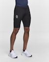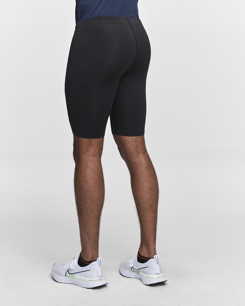 Tights Athlete are short running tights with good support for the muscles. Intended for training and competition. The tights are made of recycled material and have good moisture-wicking properties. They have a minimalist design and fit snugly. An elastic waistband with a concealed drawstring means that the tights sit well during exercise. A small key pocket in the waistband can accommodate small items. Flat seams provide protection from chafing. Reflective details for greater visibility.
