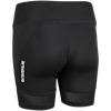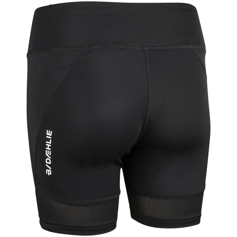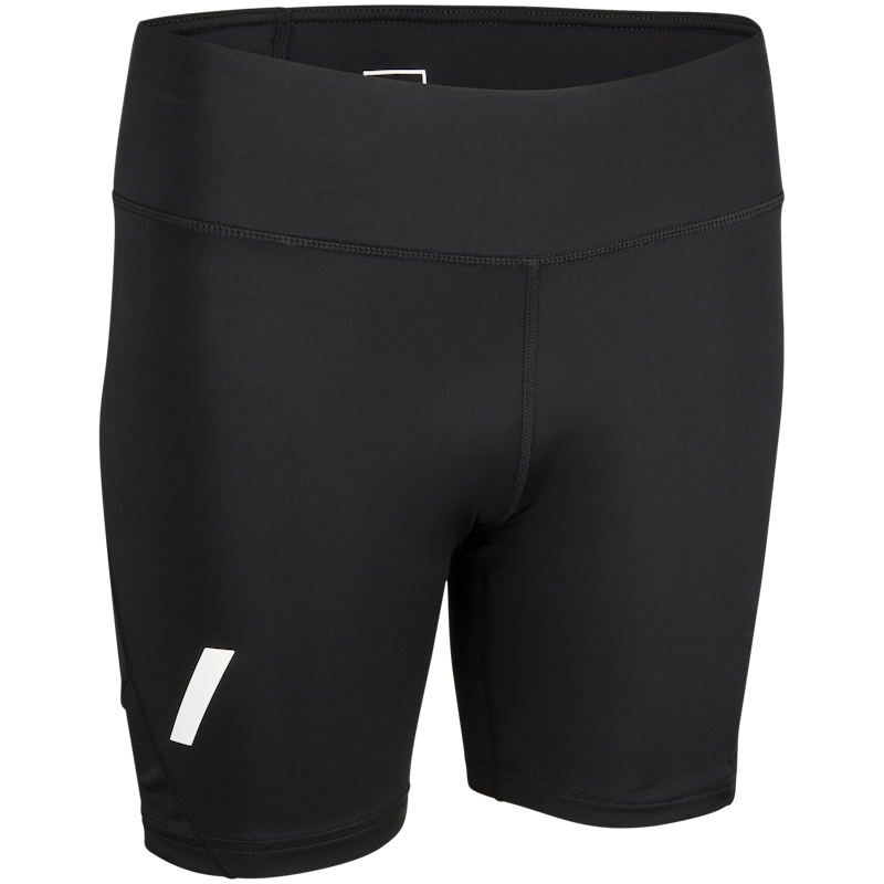 Short, women-specific running tights that wick moisture away from the body and provide good breathability for dryness during high energy activities.