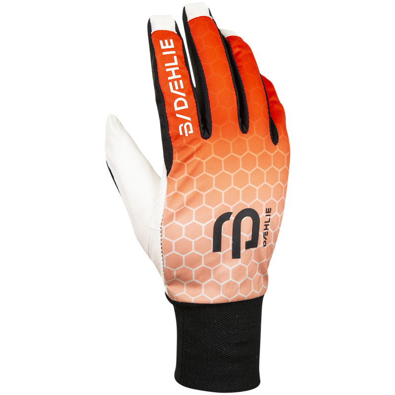"Glove Race Wmn is a tailored, snug-fitting racing glove designed for competition and high-intensity training. This glove is suitable for women's hands. A lightweight glove with wind- and water-repellent 3-layer soft shell on the back of the glove and synthetic leather in the palm of the glove for extra good grip. The synthetic leather in the palm of the glove is specially developed for gloves and is as breathable as leather. An elastic ribbed cuff with elastic seams makes the gloves easy to put on, even when they are damp. Strategically placed seams make the fingertips seamless for optimal comfort. There are minimal seams on the rest of the glove to avoid unpleasant chafing. Nose wipe made from cozy fleece material. The ergonomic design with its shaped fingers makes this the ideal glove for anyone looking for that little bit extra. This is one of the top designs in a completely new generation of gloves from Dæhlie, developed to give skiers the best start to their ski session, whether involved in training or competition."