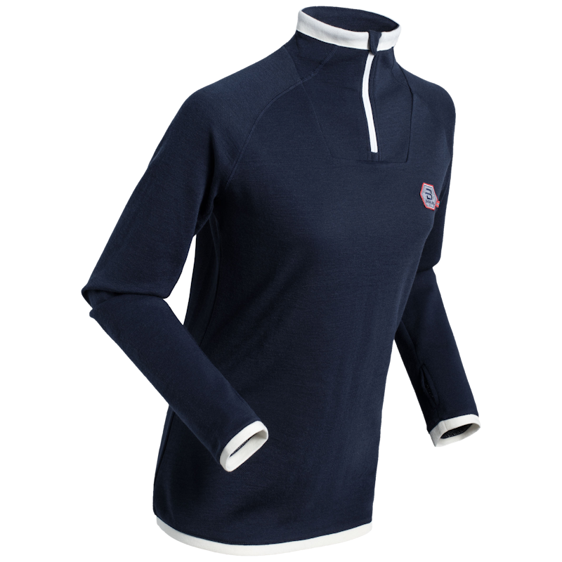 Half Zip Podium is a versatile and stylish midlayer, perfect for those who appreciate both functionality and timeless design. Made from a comfortable wool blend, it combines warmth, comfort, and durability. The high collar with a zipper provides adjustable ventilation and extra protection against cold weather. The dark blue color with white trims adds a classic touch, while the embroidered logo lends a refined detail that compliments its sporty elegance. For those who value both functionality and style, Half Zip Podium is a reliable choice—whether you're heading to or from training, enjoying a leisurely walk, or simply looking for a comfortable layer to keep you warm all day.