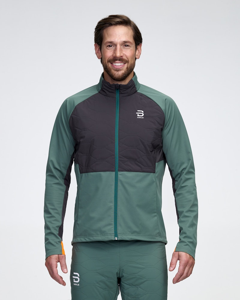 "Challenge 2.0 is the improved version of the optimal watersed cross -country jacket for the active skier. Perfected for training out on cold winter days. Consisting of wind and water repellent 3-layer softshell upgraded with PU diaphragm, designed to keep moisture out, while transporting moisture from the inside, so the jacket both dries quickly and breathes well through high intensity workouts. Designed with padding on the most exposed chest area when it comes to cold, this jacket keeps you warm on even the coldest days. The padding is designed to encapsure moisture, with a laminated front that ensures that the moisture does not absorb and freezes in the garment. The strategically placed elastic material in the back and under the arms ensures movement and ventilation. Rudolf Bionic Finish® ECO technology on the surface of the fabric further assures that light rain and sleet bangs off, while safeguarding good breathability. Insulated with Thermore® Ecodown, which consists solely of recycled fibers from PET bottles, this jacket provides heat with improved durability throughout the life of the garment, while at the same time constituting a lower environmental impact. Designed as part of a set, you can combine this jacket with Pants Challenge 2.0 to complete the perfect outfit for cold days. This unique padded jacket has molded sleeves, tension cord in life and elastic cuffs for optimal fit. Other attributes include YKK® zippers, fleece lining in the throat for extra heat."