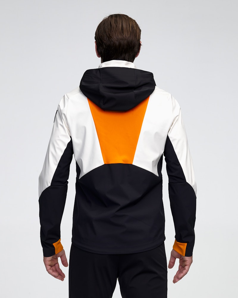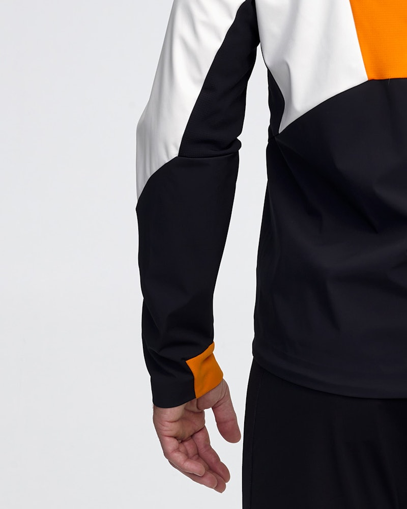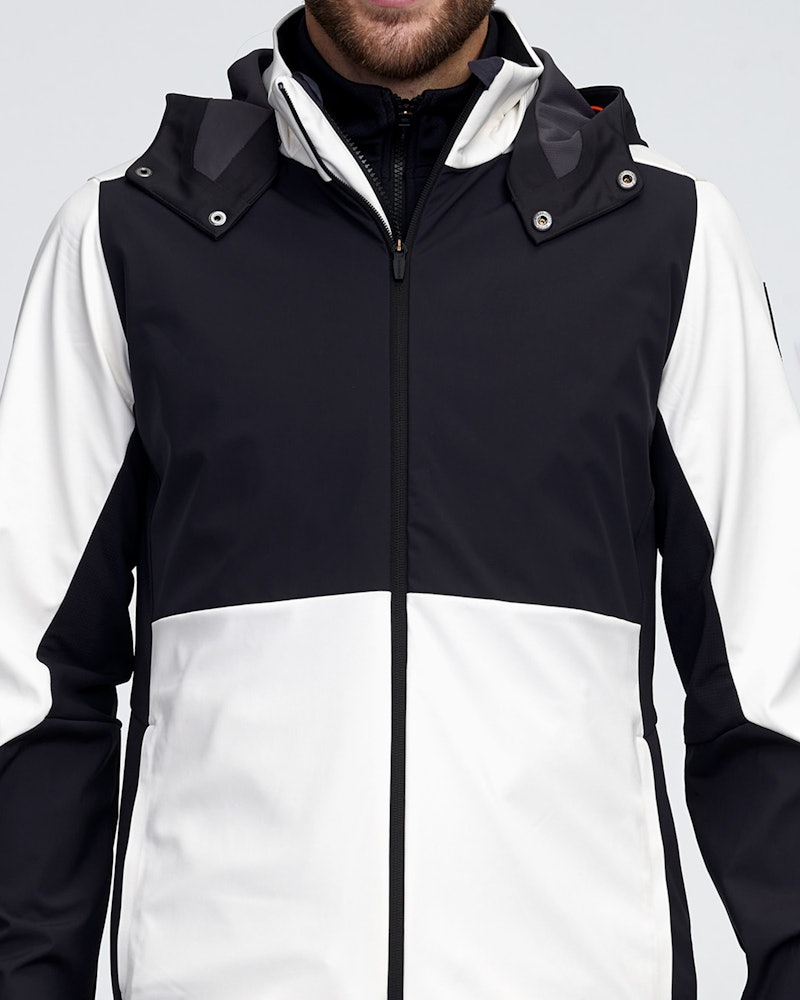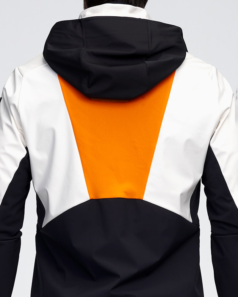 This multifunctional hybrid consists of a 3-layer softshell material laminated with PU membrane, constructed to keep water out, whilst moving moisture from the inside out, ensuring both quick drying-abilities and optimal breathability throughout your training. This technical cross-country jacket features hardshell panels placed at strategic zones prone to rougher wear and tear, to further ensure the jacket’s longevity. Wind-resistant and water repellent, this 4 way stretch jacket is optimally insulated, temperature regulating, allowing you to push your boundaries further than ever before. The strategically placed elastic panels ensure full range of movement, and further enhances the maximal ventilation properties. Raw 5.0 includes a removable interior vest that can be worn separately, which features Thindown® Active Insulation padding – a 60% duck down/40% polyester blend produced in fabric format in Italy – yielding all the benefits of down, as well as the best of polyester. This fabric is lightweight, and can be washed on a normal cycle without causing the down to clump together. The hood, is both adjustable and detachable, and can be worn either on the jacket or vest as you please. The collar of the jacket features a brushed inside, providing added comfort throughout your entire session. The articulated sleeves and single-grip adjustable hem ensure the optimal fit. Other features include YKK® zippers, bonded hem and elastic cuffs, two zippered pockets and a fashionable logo patch. The must-have for any athlete looking to elevate their performance on the tracks this winter. Water column: 15.000 WP, Breathability: 15.000 MVP