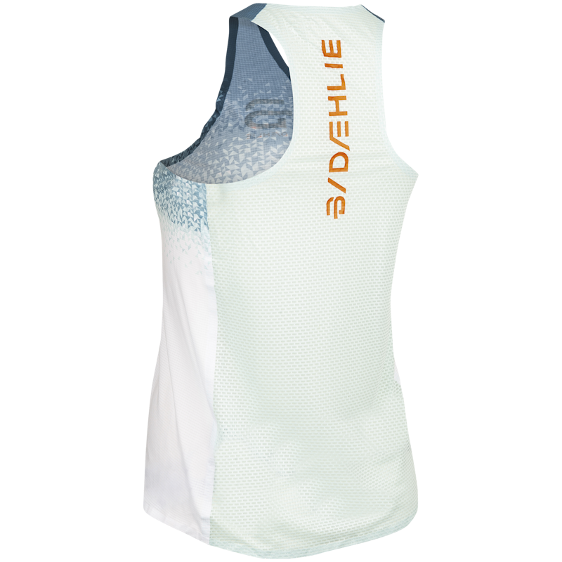 "Singlet Elite Wmn er designet for og sammen med noen av de raskeste langdistanseløperne i Norge og Europa. Deres tilbakemeldinger, ønsker og krav var avgjørende ved utviklingen av en singlet som har til hensikt å heve prestasjonen deres under viktige treningsøkter eller konkurranser. Temperaturregulering, samt å holde kroppstemperaturen nede var viktigst for disse idrettsutøverne. Med summen av tilbakemeldinger laget designteamet den nye Singlet Elite, den raskeste singletten noen sinne fra Dæhlie Singlet Elite er konstruert ved å bruke et avansert teknisk materiale. Det strikkede meshmaterialet ventilerer svært godt og gir eksepsjonelle fukttransporterende og hurtigtørkende egenskaper. Stoffet er superlett da en singlet i størrelse M for menn kun veier 56g. Sømløs avslutning rundt halsen, armhulen og nederst på singletten. Limte sømmer sammen med den myke overflaten reduserer dette sjansene for ubehaglig friksjon og gnagsår under langkjøring på trening eller at mataron."