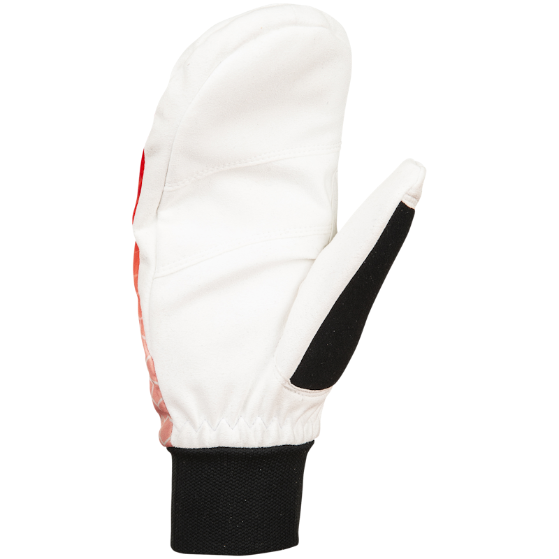 "Mitten Race Warm Wmn is a warm mitten designed for high-intensity exercise at cold temperatures. This mitten is suitable for women's hands. A lightweight mitten with wind- and water-repellent 3-layer soft shell on the back of the glove. The top side of the mitten is padded with Thindown Flex, down produced in fabric format in Italy, which provides excellent insulation. They are lightweight and can be washed on a normal program without the down clumping. Brushed material on the inside provides comfort and extra warmth. The synthetic leather in the palm of the mitten is specially developed for gloves and is as breathable as leather. An elastic ribbed cuff with elastic seams makes the mittens easy to put on, even when they are damp. Minimal seams prevent unpleasant chafing. Nose wipe made from cozy fleece material. The ergonomic shape makes this the ideal mitten for anyone looking for that little bit extra. This is one of the top designs in a completely new generation of mittens from Dæhlie, developed to give skiers the best start to their ski session, whether involved in training or competition."