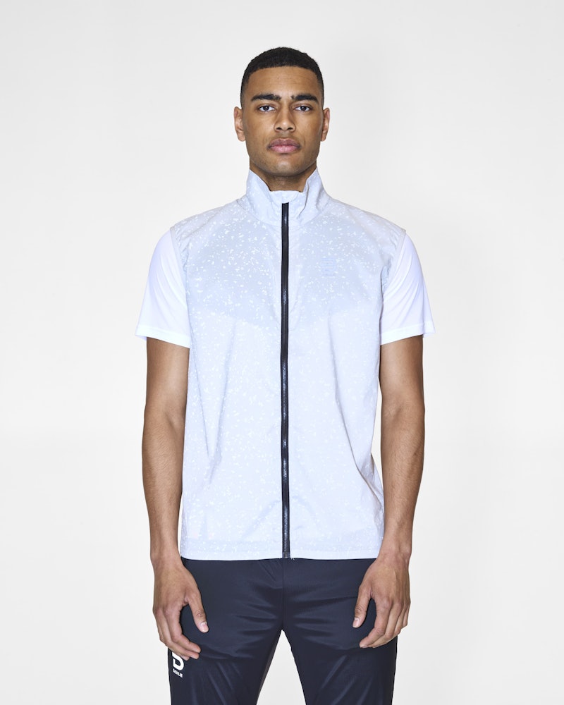 Comprised of recycled materials, this vest features Rudolf Bionic Finish® Eco technology coating the surface to ensure light rain and sleet running off, yet maintaining breathability, allowing you to focus solely on your run. Stripped of the additional details that could be superfluous during training sessions, to ensure an optimal workout. 4-way stretch throughout the garment and split openings at the side allows for maximized mobility. The technical quick-drying fabric allows fresh air to enter, whilst also releasing hot or humid air, ensuring optimized ventilation properties, keeping you comfortable throughout your session. This vest is developed as a part of the 365 system, which is designed to cover all your running needs throughout the entire year, and can easily be mixed and matched freely with any garments from the same line. Other features include a chin guard for protection, reflective detailing and logo for visibility at all angles, and YKK® zippers. This is the ideal choice for athletes looking for a technical lightweight vest that allows you to go that extra mile throughout the year.