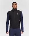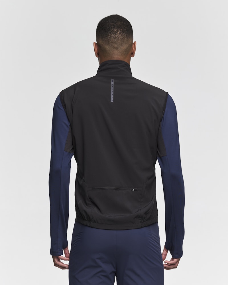 Vest Run is the perfect running vest for cold temperatures. It feels almost weightless, even with insulating padding at the front. The padding consists of a mixture of merino wool and recycled polyester to provide great heat protection in areas exposed to the cold. The vest has several reflective panels at front and back, providing maximum visibility in the dark. They are not visible in daylight, but are highly visible when you need them. The vest's back pocket has two functions. You either use it to keep your belongings in during your run, or you can turn the vest into the pocket to save space. The front zipper zips right up to the neck with comfortable chin protection. Laser-cut holes at the top of the back provide good ventilation.
