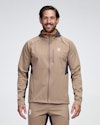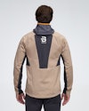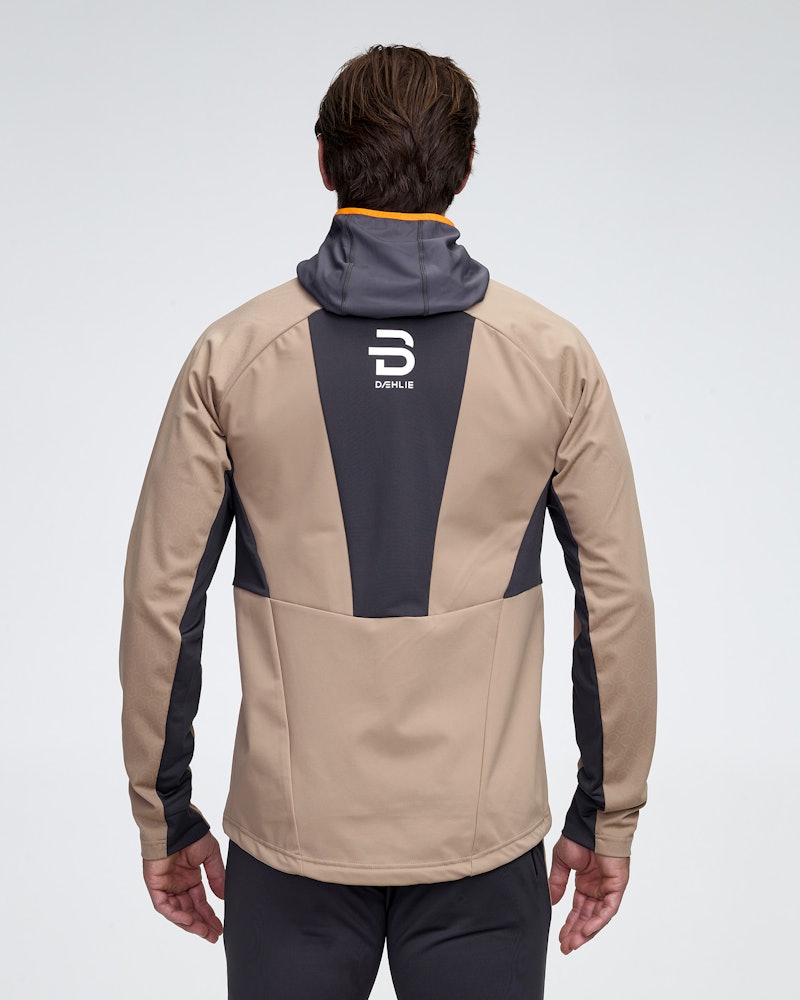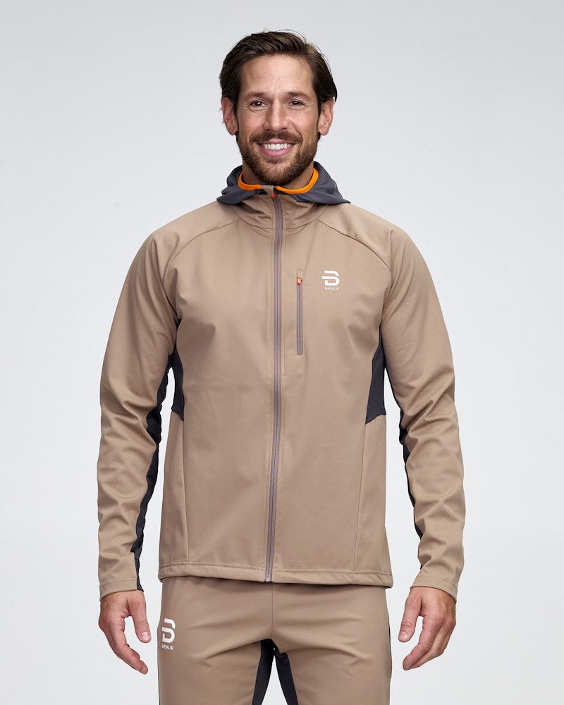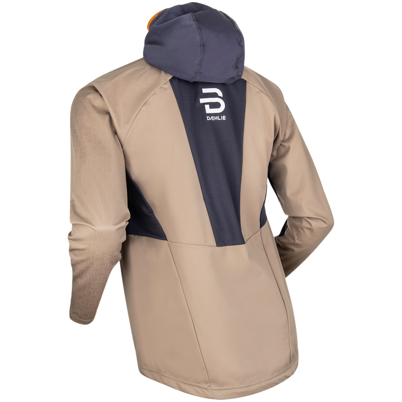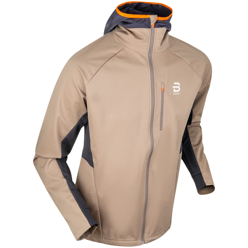 Jacket North is a hooded cross-country jacket meant for moderate-intensity training. Wind- and water-repellent 3-layer softshell in front, on the arms, and parts of the back. Bionic Finish Eco® technology on the fabric surface ensures that light rain and sleet run-off. Mesh panels below the arms and on the back provide optimal ventilation and mobility. The jacket has a higher neck than average and a lightweight hood with a brushed interior that provides good insulation. One zippered chest pocket. Interior drawstring at the bottom of the jacket for an individualized fit. A cool pattern appears in the softshell material when the temperature drops below.