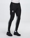 "Laminated with a TPU membrane, to ensure that light rain and sleet effectively runs off, these pants yields some protection from the weather, whilst keeping you warm when it’s cold outside. Strategically placed elastic panels, the crotch gusset and the articulated knees allow full range of motion and added ventilation, providing the optimal fitting pants for your running session. The elastic waistband featuring a silicone border and internal drawstring further ensures these pants’ optimal fit, allowing you the comfort to maximize your potential. Other features include YKK® zippers at the legs, reflective detailing and logo for added visibility. The best choice for your optimized second layer for running in milder conditions where you need some extra warmth."